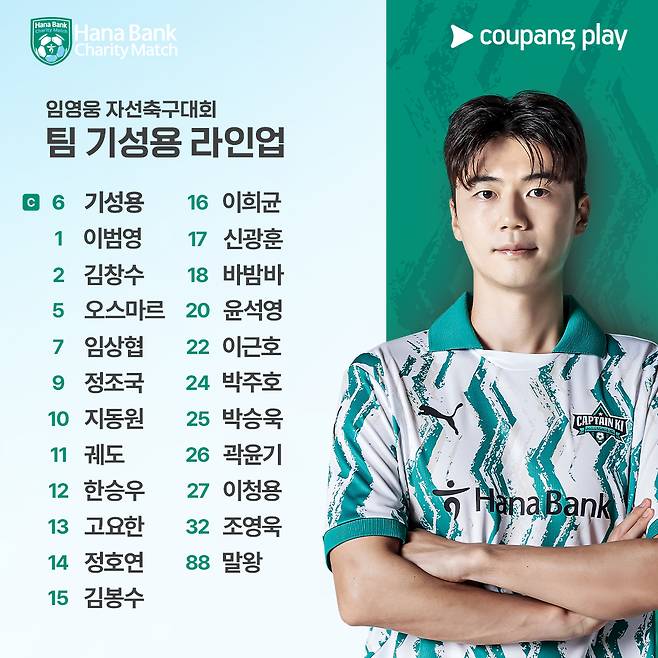 국민가수 임영웅이 출전하는 하나은행 자선축구대회 최종 라인업이 공개됐습니다.
