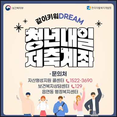 궁금한 사항은 자산형성지원콜센터(☎1522-3690), 보건복지상담센터(☎129), 그리고 각 구청 및 동 행정복지센터로 문의하시기 바랍니다.